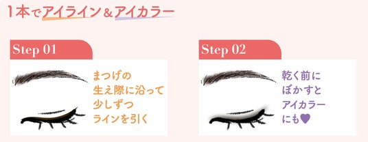 まつげの生え際に沿って少しずつ引いてアイラインが完成、また乾く前に指でぼかすとアイカラーとしてもご使用いただけます♪