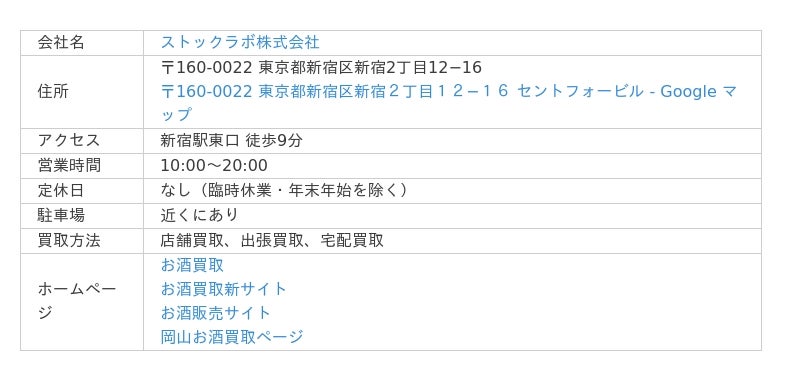 出張料無料でその場で現金化できるので、店舗同様の買取サービスが受けられます。生活用品全般を取り扱っていますが、お酒買取に関する詳細情報が少ないため、事前に問い合わせて確認することをおすすめします。