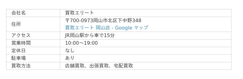 岡山店はJR岡山駅から車で15分、駐車場完備でアクセス抜群。徹底した市場調査に基づいた高価買取が魅力です。気軽に立ち寄って、安心の買取体験をしてみてはいかがでしょうか。