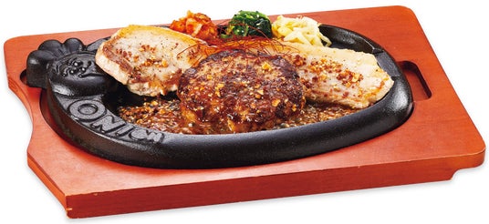 ジューシーなハンバーグと、香ばしいサムギョプサルが一度に楽しめる贅沢コンビメニュー!