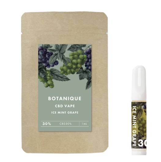 - アイスミントグレープ(CBD30%)(※写真上) 爽快な清涼感とグレープの甘さが心地よいリフレッシュフレーバー。