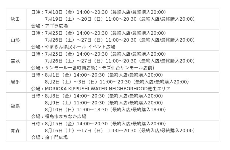 <出張マルエフ横丁 東北エリアスケジュール>