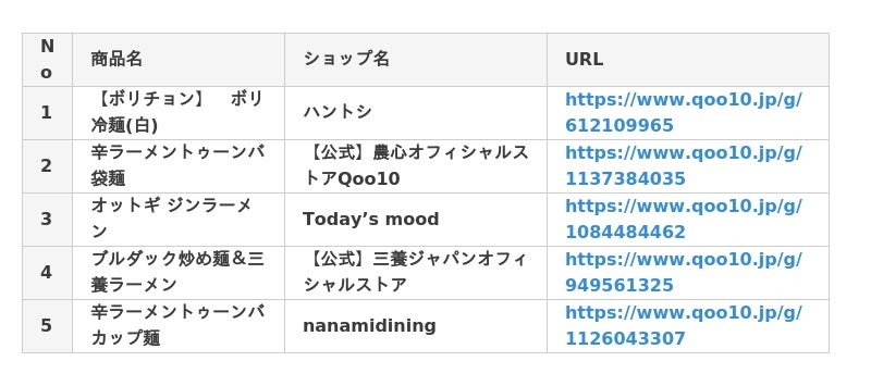 インターネット総合ショッピングモール「Qoo10」を運営するeBay Japan合同会社(本社:東京都港区、代表取締役:グ ジャヒョン)は、「韓国麺類」の販売数TOP5*を発表いたします。