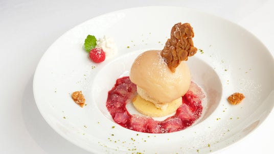 なめらかな舌ざわりが特徴の鵞鳥(ガチョウ)のフォアグラを、本店から直送された門外不出のスパイスと、芳醇なコニャック、ポルト酒、ソーテルヌで一晩じっくりとマリネ。丁寧に火を入れ、絹のような口溶けのテリーヌに仕上げました。甘酸っぱいアプリコットとプルーンのコンフィチュール、そして牛テールとポルト酒の旨味が凝縮されたジュレが、味わいに華やかなアクセントを添えます。