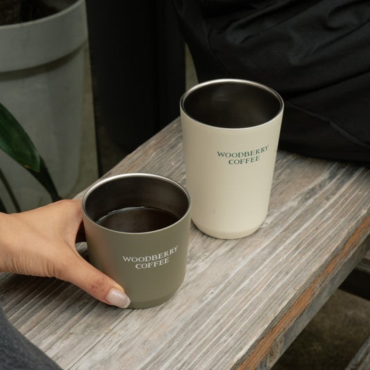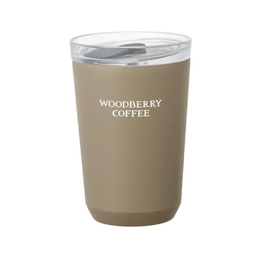 紙コップやマグカップのように使える手軽さと、保温・保冷の機能性を兼ね備えたKINTO の "TO GO TUMBLER" です。WOODBERRY COFFEE タイポグラフィをあしらった、オリジナルデザインのアイテムです。