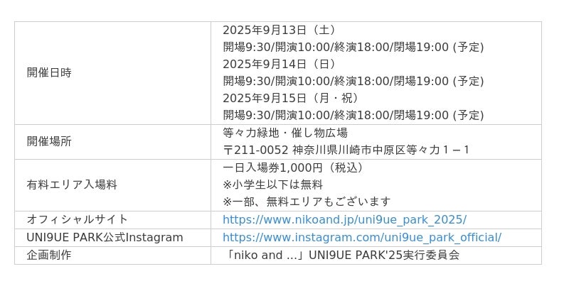 ■「niko and ... UNI9UE PARK MARCHE'25」概要