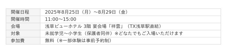浅草ビューホテルとつくばエクスプレスの周年を記念し、つくばエクスプレス(TX)をテーマにした体験型イベントを、2025年8月25日~29日、浅草ビューホテル3階「祥雲」にて開催します。