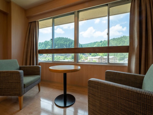 洋風ながらも素足で過ごせるのが嬉しい、春来川沿いの和モダンなデザインの客室。大きめの室内縁側を備え、昼はバルコニーとしてゆったりとすることができます。ベッドはふかふかの羽毛布団を使用しシーツが乱れにくい「デュベスタイル」。ローベッド(低めのベッド)タイプなので、チェックイン後すぐにおくつろぎいただけます。