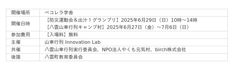 [八雲山車行列キャンプ村] - [山車行列Innovation Lab]主催 - [2025年6月27日~7月6日]に開催