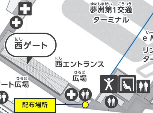 【配布場所】万博会場西ゲート東側、西迷子ベビーセンター入口脇付近※