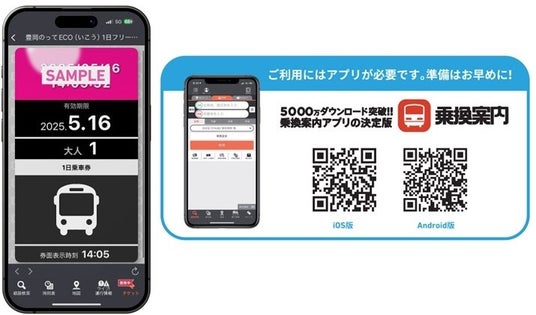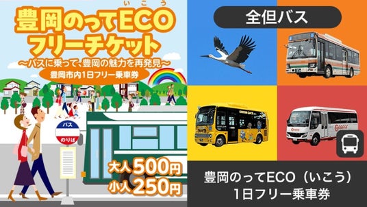 「豊岡のってECO」実施日に市内の路線バスやコミュニティバスなどが乗り放題となるフリーチケットを販売します。対象範囲