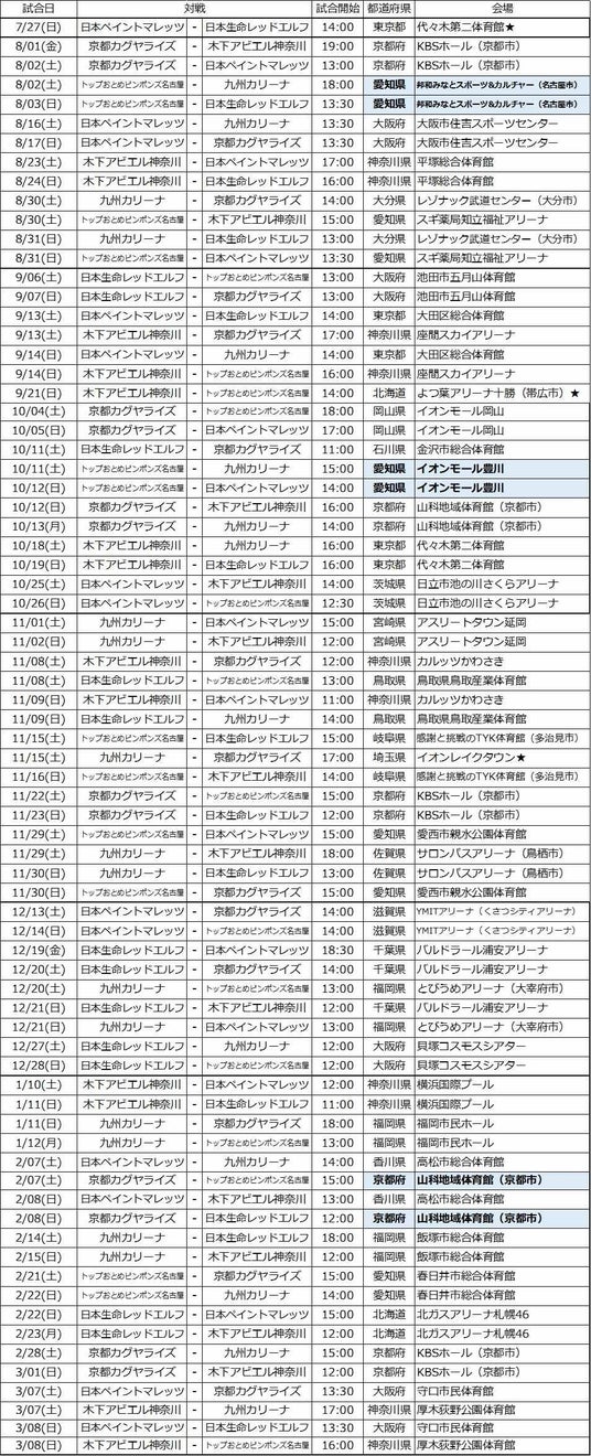 Tリーグでは、ノジマTリーグ 2025-2026シーズンの試合スケジュールのうち、「会場未定」としておりました、2025年8月2,3日、10月11,12日のトップおとめピンポンズ名古屋主催試合の会場が決定しました。また、右京地域体育館での開催として発表しておりました2026年2月7,8日の京都カグヤライズの会場は、山科地域体育館に変更となります。