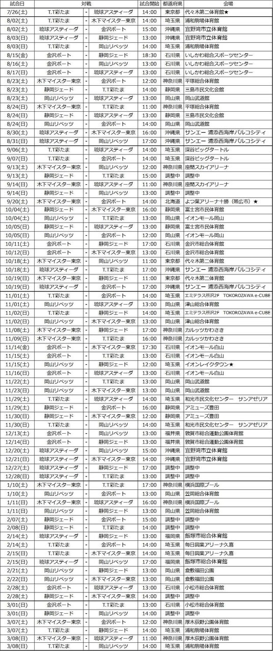 ノジマTリーグ 2025-2026シーズン 会場決定・変更、試合開始時間決定