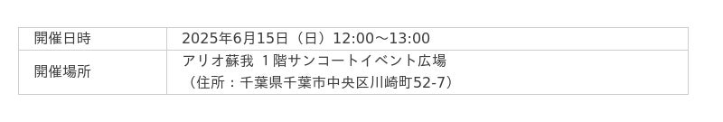 同日アリオ蘇我1階サンコートイベント広場では、千葉の地域活性化を目的とし、千葉の人、モノ、食の出会いを創出する「千葉ハレノヒ万博」も開催いたします。
