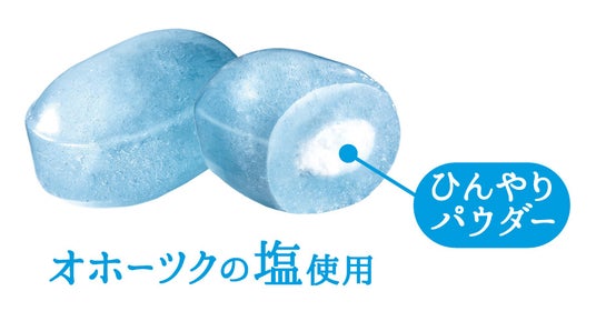 ・オホーツクの塩を使用した適度な塩味とソーダのさわやかな甘みが特長で、センター部から溶け出すひんやりパウダーで味わいの変化を楽しめます。
