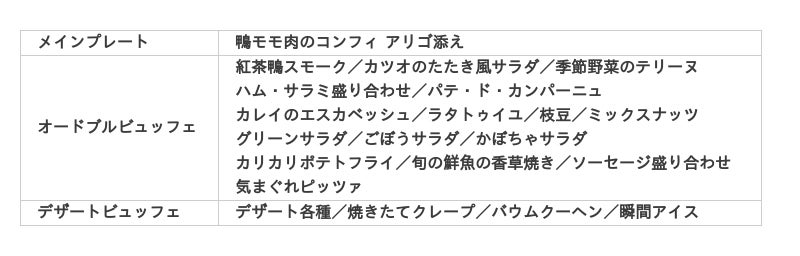 【メインディッシュは鴨モモ肉のコンフィ アリゴ添え】