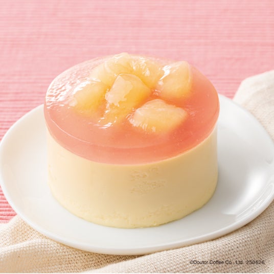 みずみずしい果実のおいしさを閉じ込めた、夏限定の爽やかなレアチーズケーキです。ふんわり軽やかなチーズムースの中に、食感が楽しいシャインマスカットゼリーを忍ばせ、天面にも果肉入り白桃ゼリーをあしらいました。