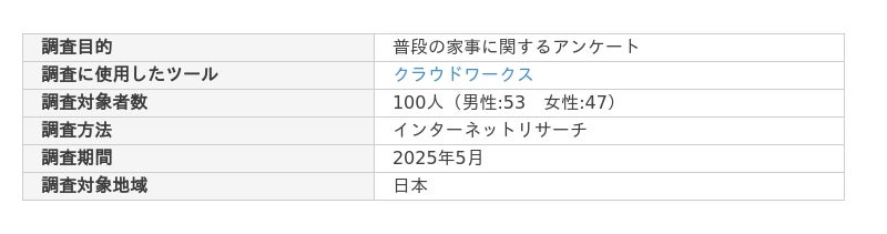 普段の家事に関する独自アンケートの概要