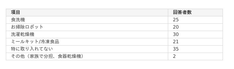 家事の時短のために取り入れてるものは?(複数回答可能)
