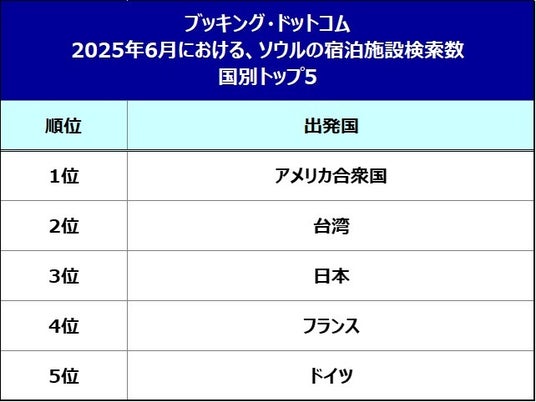 *1 2025年1月1日から5月11日の間にBooking.com上で行われた、2025年6月9日から28日までのチェックインを対象としたソウル旅行の検索データに基づいています。