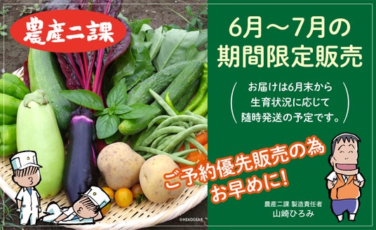 『機動警察パトレイバー』に登場する山崎ひろみ完全監修、特車二課第2小隊の野菜ブランド「農産二課」夏野菜セットの販売を6月11日より開始いたしました。