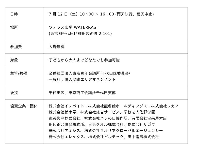 開催場所:ワテラス広場[WATERRAS] (東京都千代田区神田淡路町 2-101)