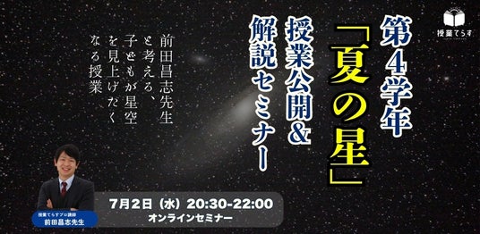 株式会社NIJIN(本社:東京都江東区、代表取締役:星野達郎)が運営する「授業てらす」は、7月2日(水)オンラインセミナー「第4学年 夏の星 授業公開&解説セミナー」を開催いたします。