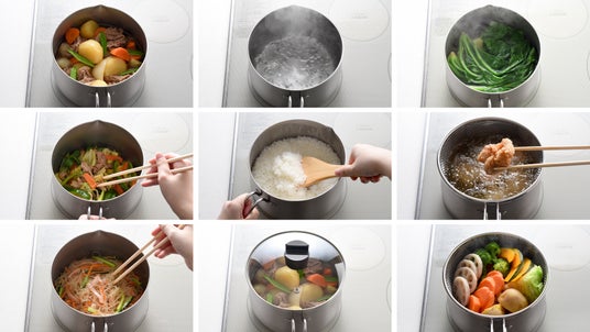 これ1つで「煮る・沸かす・茹でる・炒める・炊く・揚げる・和える・保存・蒸す」と多彩な調理がこなせます。