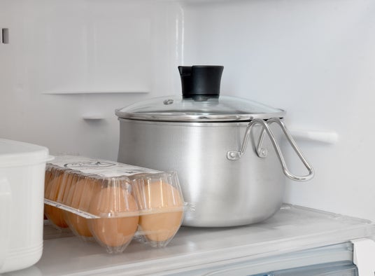 コーティングは施していないため、作ったお料理を鍋に入れたまま、冷蔵庫などで保存することができます。ハンドルが下向きに設計されているので、冷蔵庫でもスッキリ省スペースに収まります。