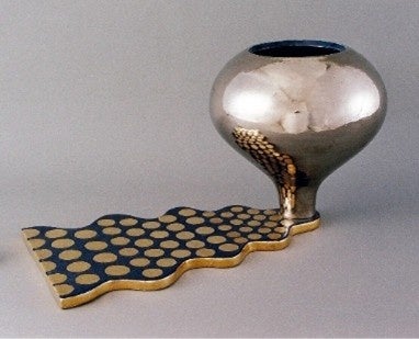 7. 柳原 睦夫《紺釉・金銀彩・花瓶》1971年