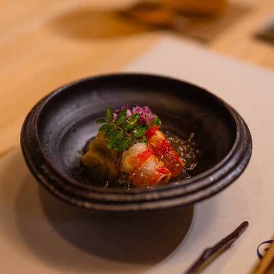 九州産の身のついた丸鶏を長時間炊き上げた濃厚な黄金色のスープと共に、日ごとに厳選した地鶏、四季を感じる旬の食材の旨みをお愉しみいただきます。