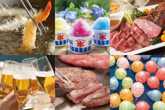 ブッフェコーナーでは、国産牛の鉄板焼きや手巻き寿司など、人気メニューを中心に多数ご用意します。また、アルコールを含むドリンクも飲み放題で、大満足いただける内容となっております。縁日コーナーでは、射的、ヨーヨー釣りなどのゲームの他に、かき氷や綿菓子、ポップコーンの屋台もあり、お子様にもお楽しみいただけます。その他、カラオケコーナーやホテル宿泊券など豪華賞品が当たるお楽しみ抽選会も実施します。ご家族皆さまの楽しい夏の思い出作りとして、この機会に是非お越しくださいませ。