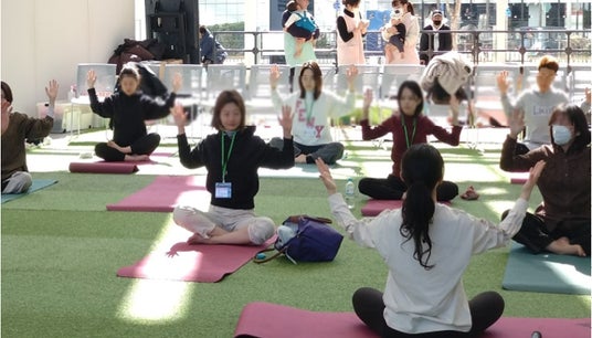 (1)子育て世代向けプログラム ※事前申込制短時間で自分の身体と向き合い、身体を温めリフレッシュできる優しいヨーガや、親子で楽しめる最新のスタジオプログラム等、「スポーツクラブ メガロス」のインストラクターによるレッスンを体験できます。