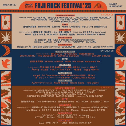 FUJI ROCK FESTIVAL'25 7月25日(金)26日(土)27日(日)新潟県湯沢町 苗場スキー場