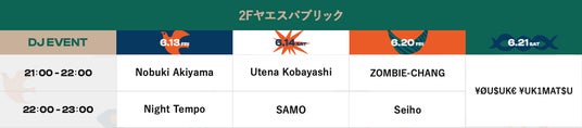 フジロックにゆかりのあるDJが、ヤエスパブリックを音楽で演出。