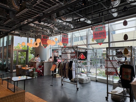 この他、過去のフジロックのポスターや貴重なライブ写真のパネルが展示されていたり、フジロックのフラッグが飾られていたりと、ミッドタウン八重洲はフジロック一色に!