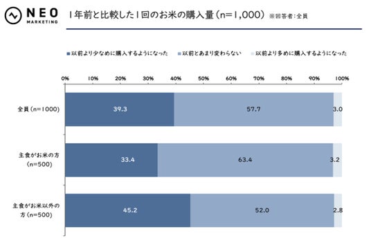 特に「主食がお米以外の方」では45.2%が「以前より少なめに購入するようになった」と回答しており、元々お米を主食としていなかった層では"さらにお米を控える"動きが進んでいることがうかがえました。