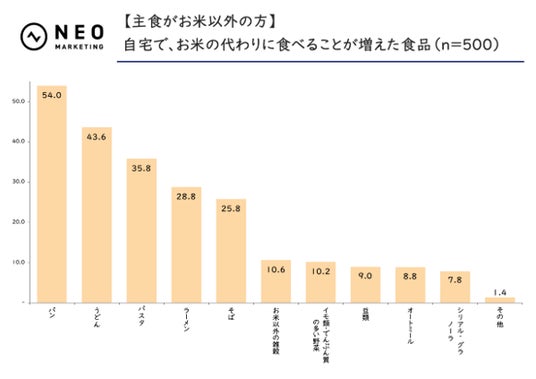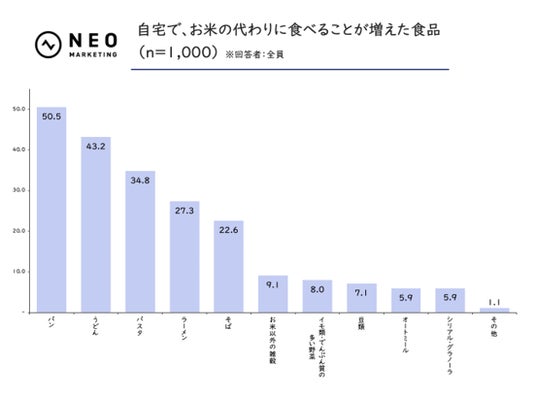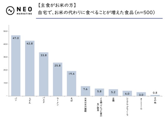 最後に、自宅でお米の代わりに食べることが増えた食品があるか、お聞きしました。