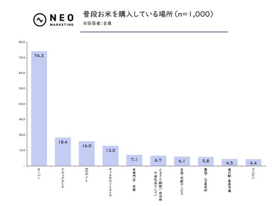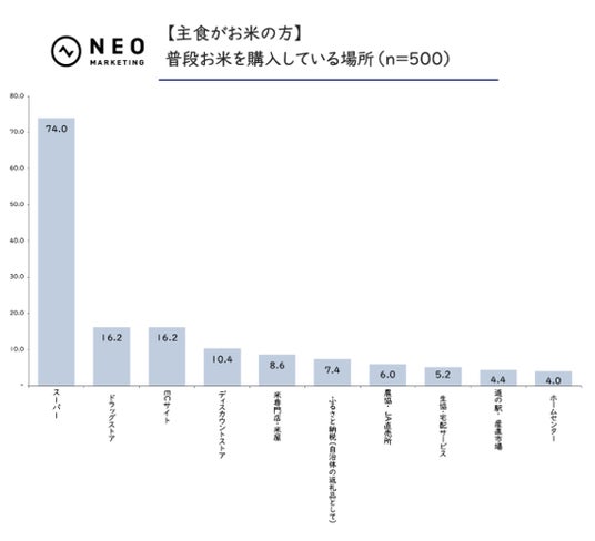 ほとんど差は生じず、「スーパー」がお米の購入場所として圧倒的な強さを誇ることが明らかに。
