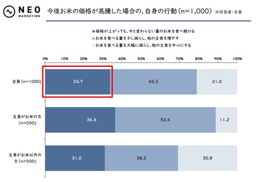 価格にかかわらずお米を食べ続けるという強い意志を持つ層が3人に1人以上いる結果に。