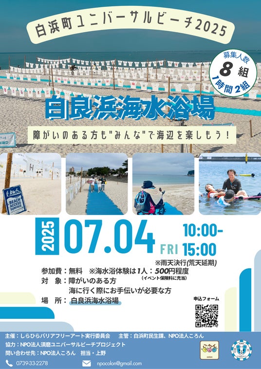 名 称:白浜町ユニバーサルビーチ2025 in 白浜海水浴場主 催:しらひらバリアフリーアート実行委員会