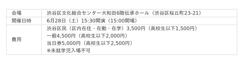 ※渋谷区民チケットは、ホール事務室での購入のみ(在住・在勤・在学を証明できるものを持参)