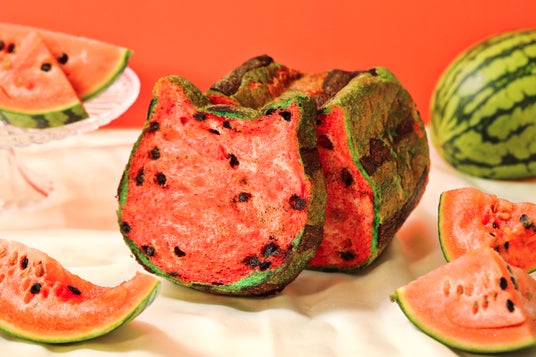 さらに、驚きの断面が楽しい『ねこねこ食パン スイカ』も同時発売。グリーン・レッド・ブラックの3色の生地と"スイカの種"を表現したチョコチップで、どこを切ってもスイカ柄が現れる遊び心あふれるフレーバーです。