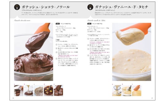 「基本のクリーム」より、ガナッシュ・ショコラ・ノワール (ブラックチョコレートガナッシュ) / ガナッシュ・ヴァニーユ・ド・タヒチ (ホワイトチョコレートガナッシュ)