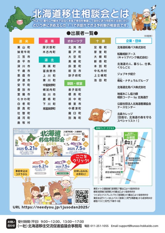 ・出展団体や会場アクセスなど、詳しくは「北海道移住相談会2025in東京」