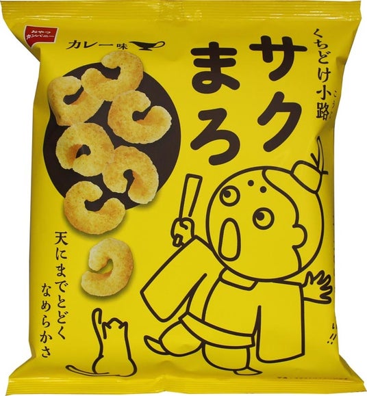 キャラクター・平安人「サクまろ」が登場するコミカルな見た目のパッケージと、サクサク食感・まろやかな口どけを表現した直球のネーミングの『くちどけ小路サクまろ』は、おつまみ感覚でお酒と一緒に楽しむ大人世代と、シュワッと爽やかな炭酸ソフトドリンクとともに楽しむ子ども世代で、世代を超えた笑顔溢れるおやつ時間をお届けします。