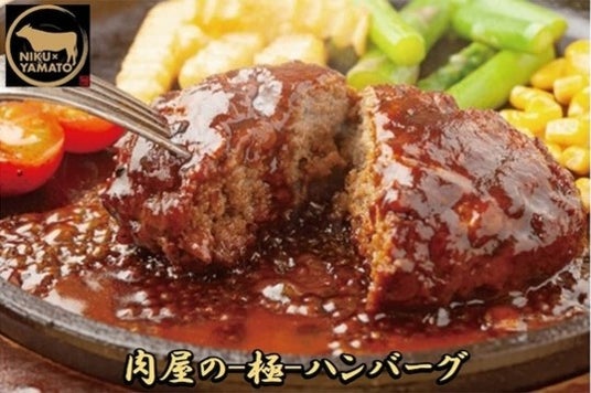大和フーズで使用している特選黒毛和牛をメインに粗挽きし、独自の配合で試作を重ねた自信をもって提供する肉屋の極ハンバーグです。お肉の旨味を存分に味わえるハンバーグを是非ご賞味ください。