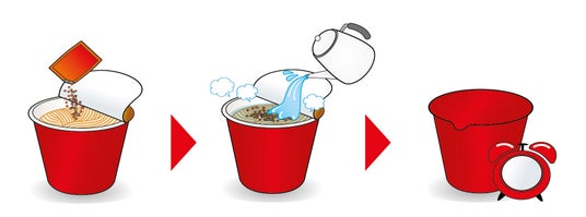 1.フタをすべてはがし、麺の上に粉末スープを入れる。