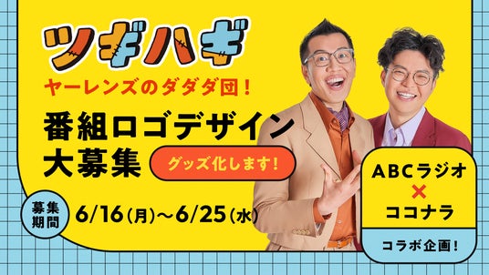 株式会社ココナラ(本社:東京都渋谷区、代表取締役社長CEO:鈴木 歩、以下「当社」)は、6月16日(月)よりABCラジオ「ツギハギ月曜日~ヤーレンズのダダダ団!」の番組ロゴデザインを、ココナラスキルマーケット(以下「ココナラ」)で募集します。
