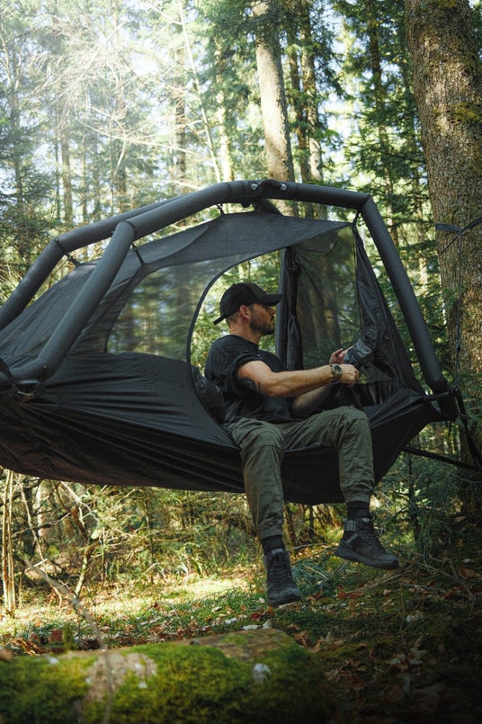 地面に接することなく設置できる、フランス発のハンモック型のインフレータブルテント。優れた携帯性と快適性を兼ね備え、自然と一体になる新しいキャンプ体験を提供します。